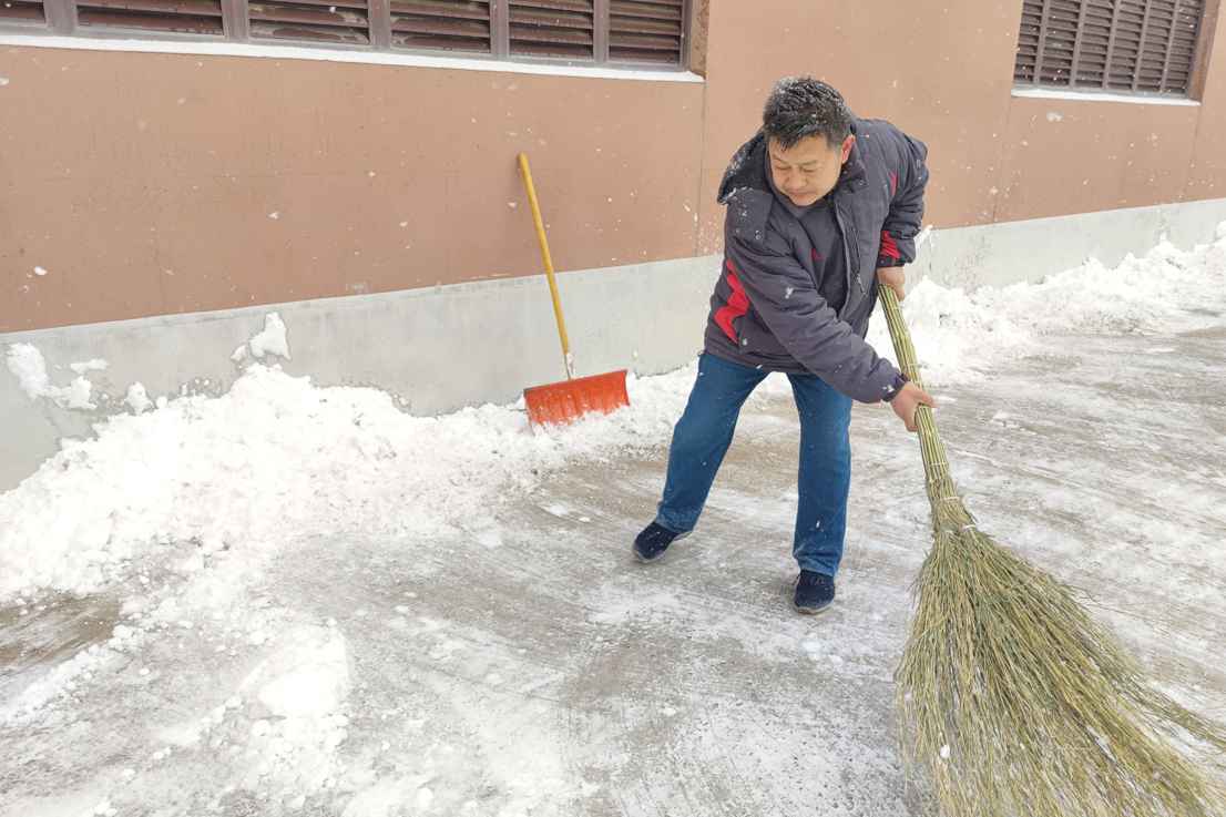 大家團(tuán)結(jié)協(xié)作,全力清理地面積雪,