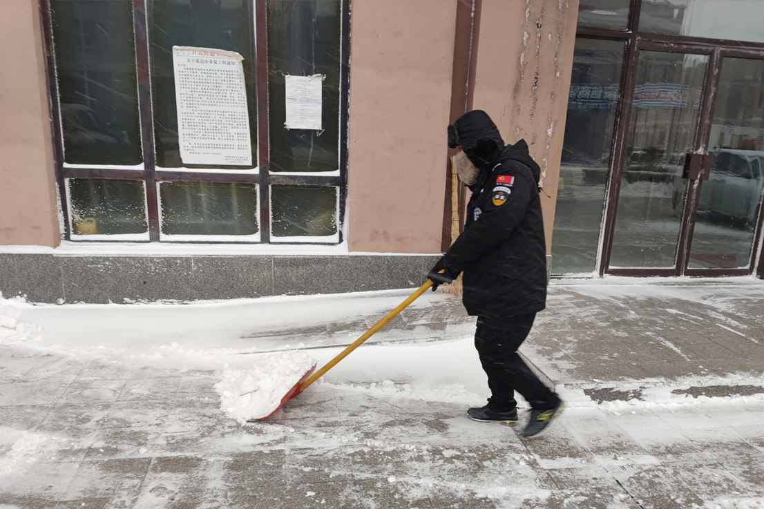 ▲防止道路結(jié)冰,工作人員加快速度鏟雪